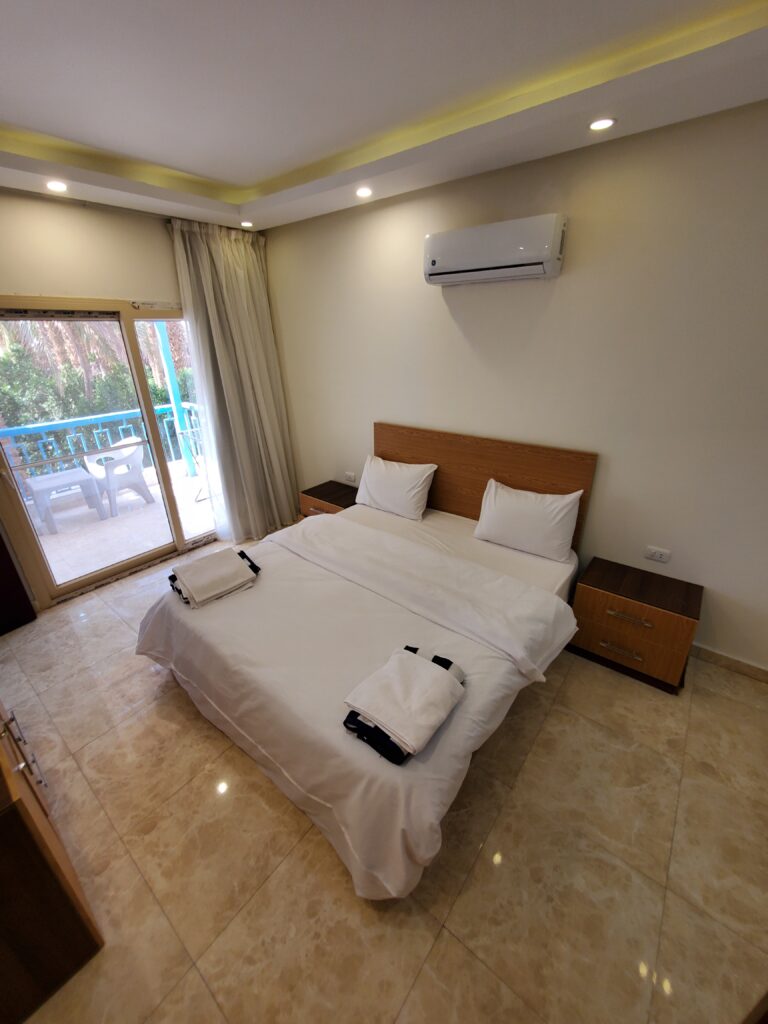 Relish stunning **garden views** and easy access to the **beach**, **aqua park**, and **pools**—all available for **unlimited free use**. Ideal for families or groups seeking a premium stay in Hurghada with style and relaxation. **”Standard 2-Bedroom Holiday Rental in Hurghada”**