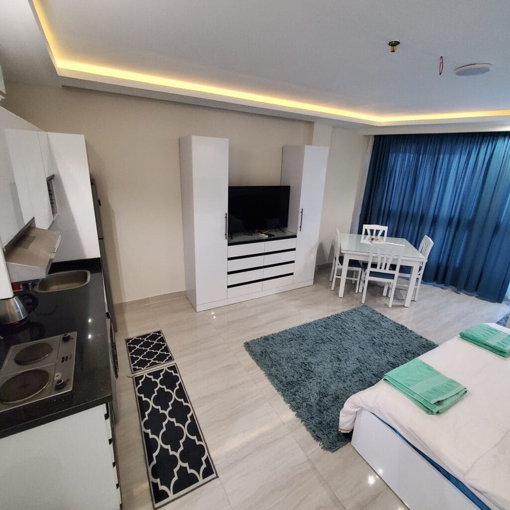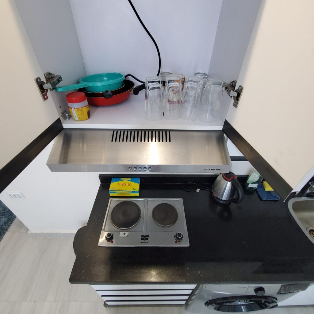 Our standard studios offer a comfortable and affordable stay. Ideal for solo travelers or couples, these studios provide a cozy retreat with essential amenities like a comfortable bed, private bathroom, and a small kitchenette. Enjoy easy access to our private beach for sunbathing and swimming, free use of our pools and aqua park for family fun, and discover local attractions in Hurghada. The sunny weather makes it perfect for enjoying the outdoors, all year round.